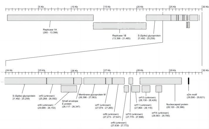 Severe acute respiratory syndrome (SARS)于2003年二月在亞洲第一次被報(bào)道,繼而傳播到全球十幾個(gè)國(guó)家,SARS屬于一種冠狀病毒,是一類具有囊膜、基因組為線性單股正鏈的RNA病毒,對(duì)應(yīng)的結(jié)構(gòu)示意圖如下: