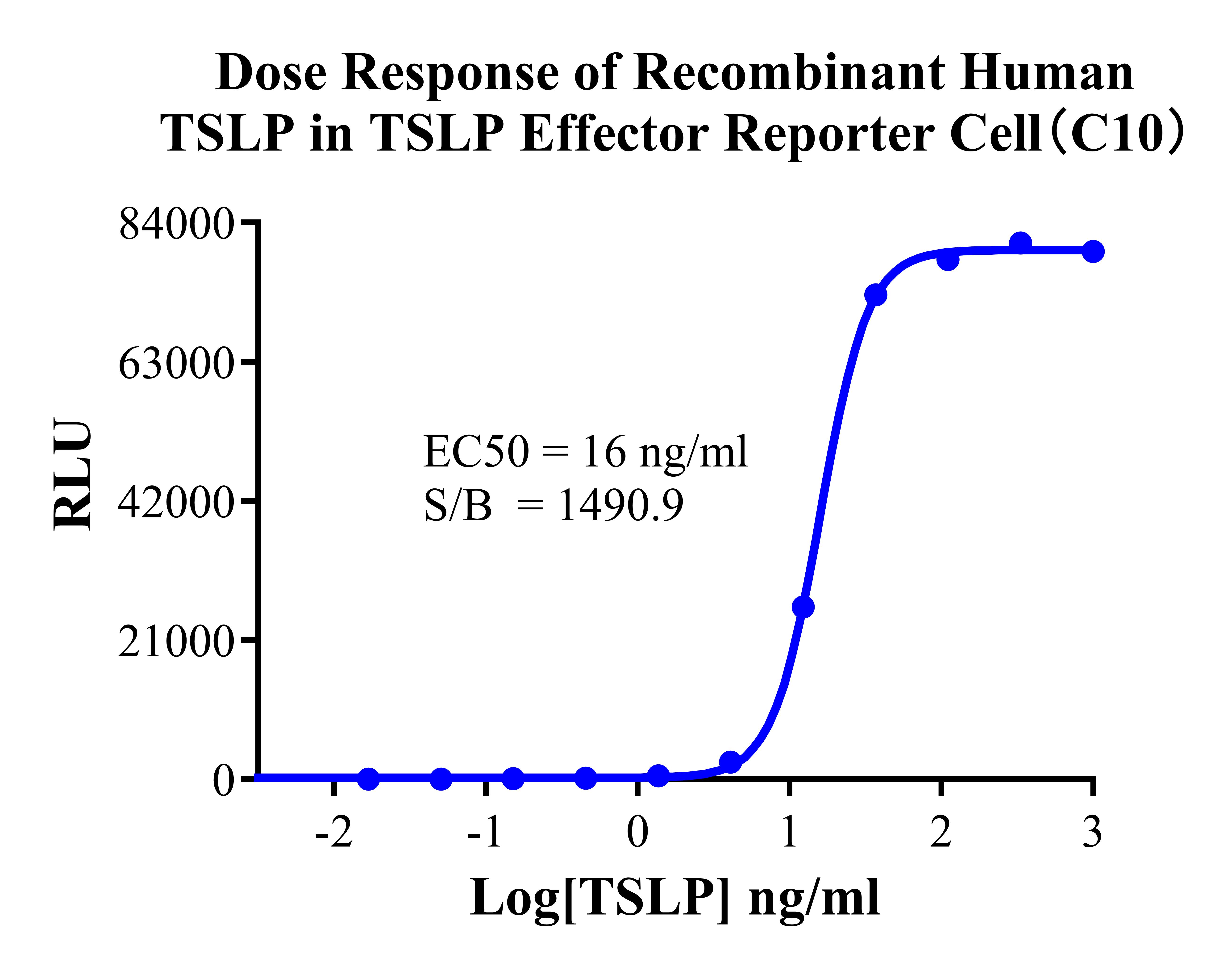 Figure 3. Dose Response of Recombinant Human TSLP in hTSLP Effector Reporter Cells (C10). |