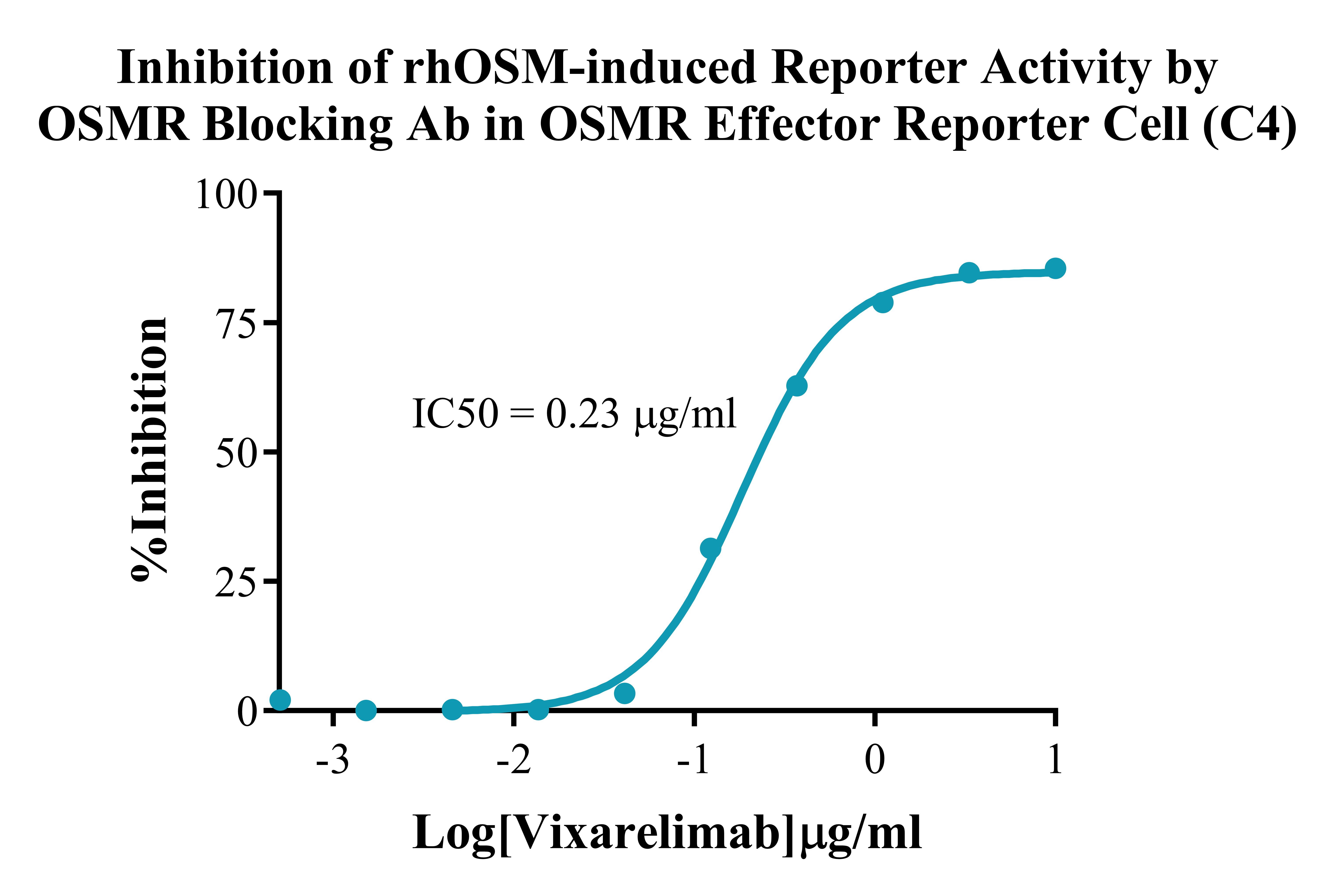 Figure 4.Inhibition of rhOSM-induced Reporter Activity by OSMR Blocking Ab in OSMR Effector Reporter Cell (C4).
