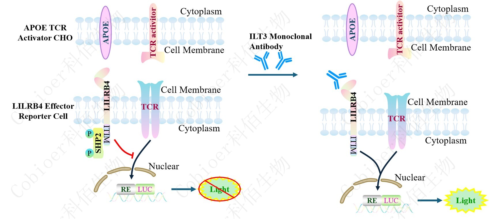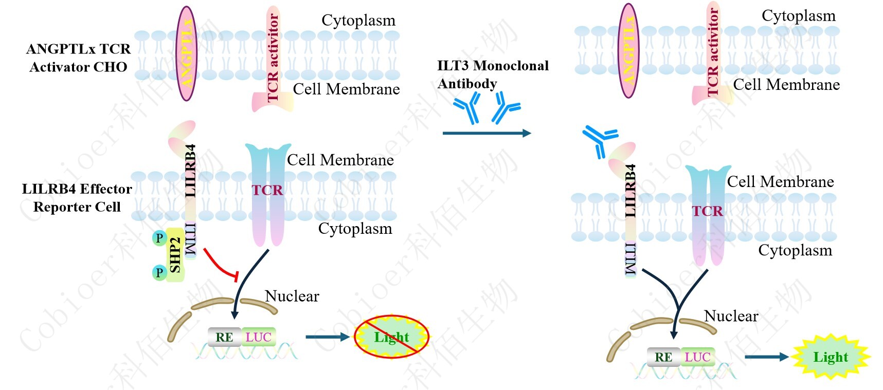LILRB4 Effector Reporter Cell 報(bào)告基因藥靶模型很好的模擬了體內(nèi) LILRB4 的信號轉(zhuǎn) 導(dǎo)過程,原理見下圖所示。![]() ![]() Figure 1. LILRB4 Effector Reporter Cell 模型原理圖
