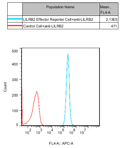 LILRB2 Effector Reporter Cell 報(bào)告基因藥靶模型很好的模擬了體內(nèi) LILRB2 的信號(hào)轉(zhuǎn) 導(dǎo)過(guò)程,原理見(jiàn)下圖所示。![]() ![]() Figure 1. LILRB2 Effector Reporter Cell 模型原理圖 |
