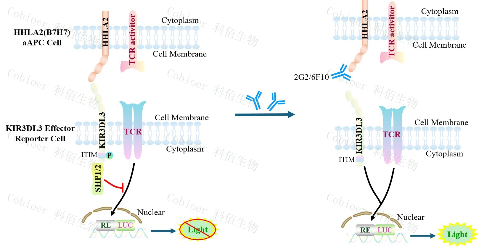 KIR3DL3 Effector Reporter Cell 報(bào)告基因藥靶模型很好的模擬了體內(nèi) KIR3DL3 的信號(hào) 轉(zhuǎn)導(dǎo)過(guò)程,原理見(jiàn)下圖所示。![]() Figure 1. KIR3DL3 Effector Reporter Cell 模型原理圖 |