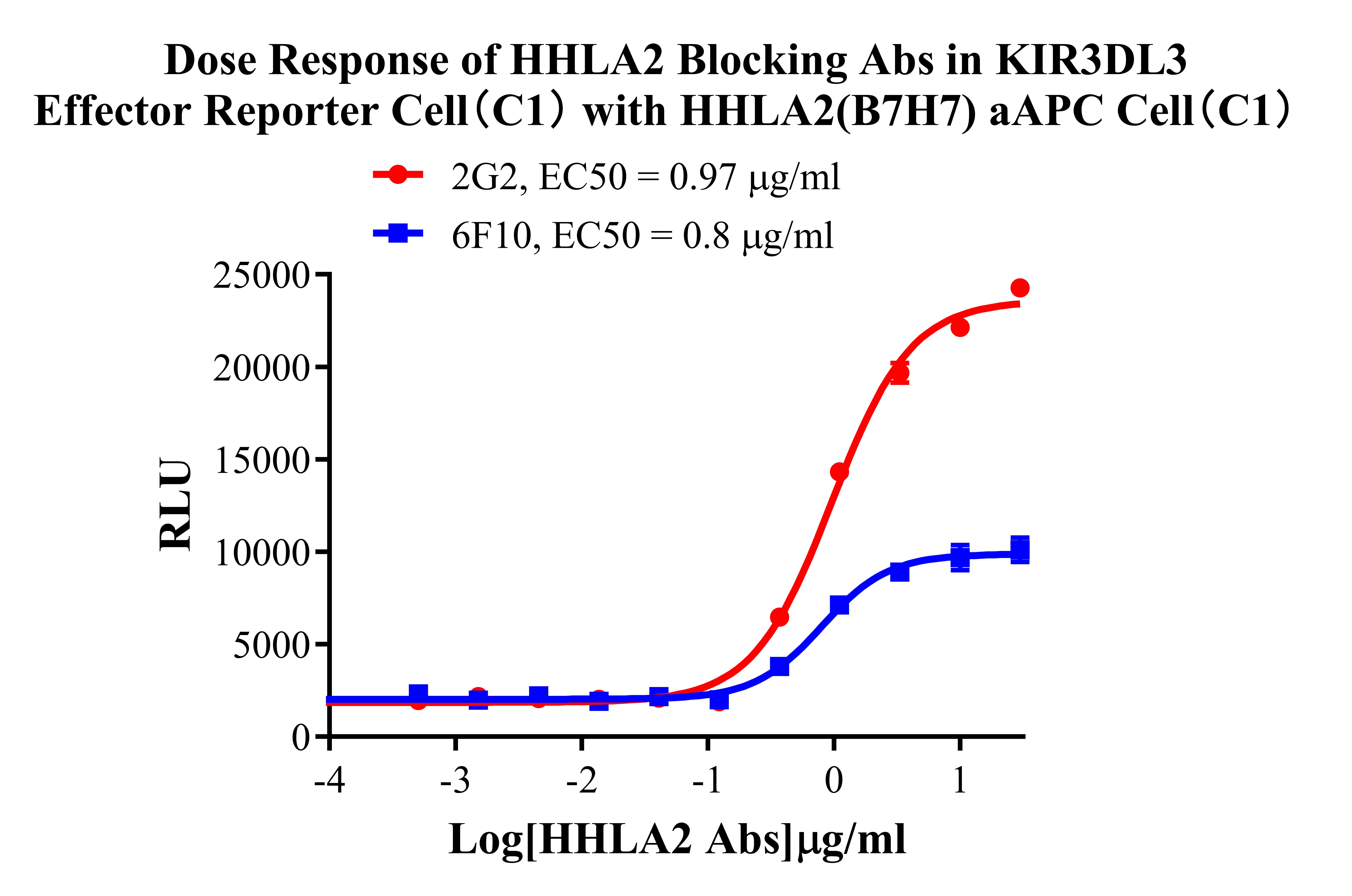 Figure 3. Dose Response of HHLA2 Blocking Abs in KIR3DL3 Effector Reporter Cell (C1)With HHLA2(B7H7) aAPC Cell(C1). |