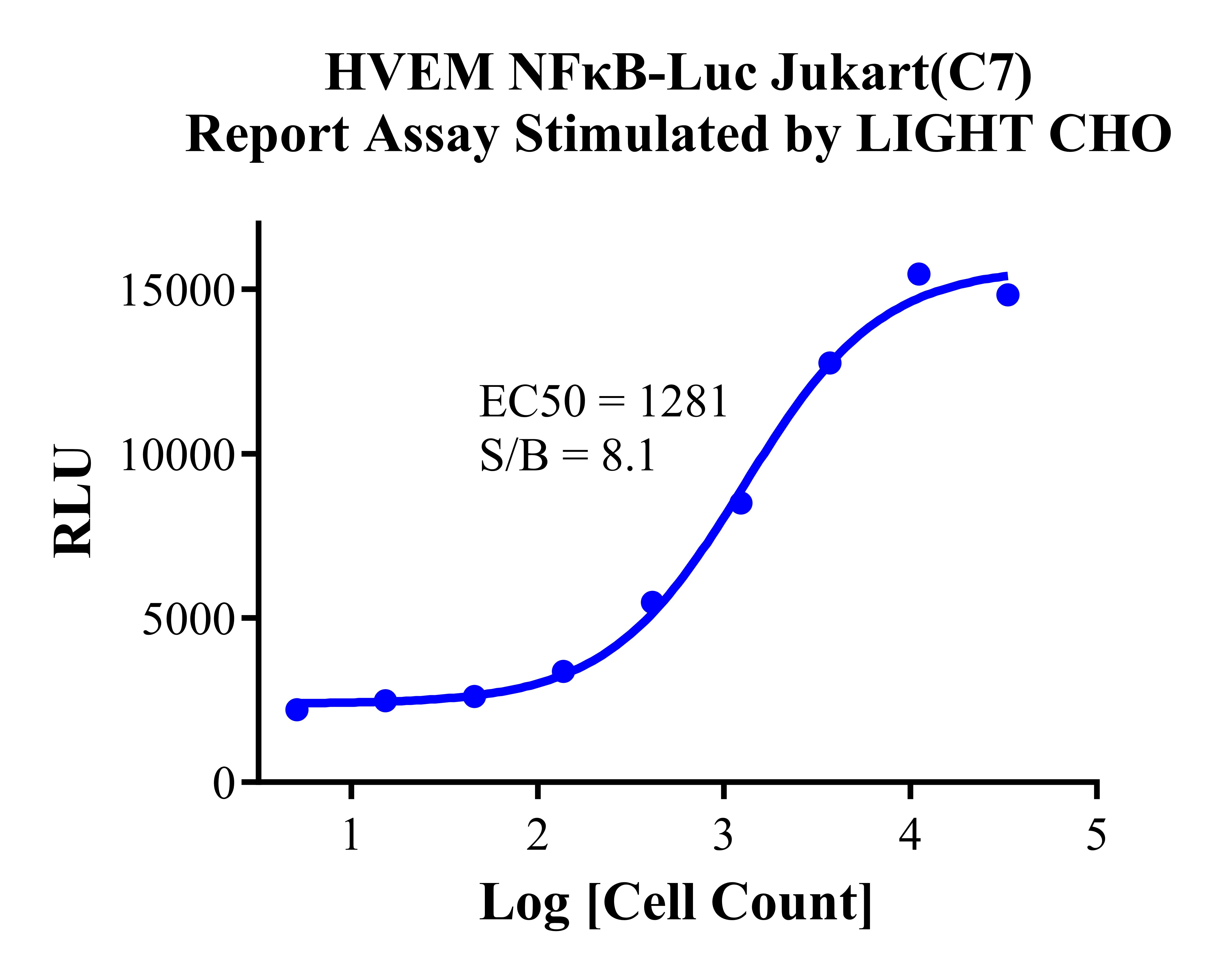 HVEM NFκB-Luc Jurkat 報告基因藥靶模型很好的模擬了體內 HVEM 的信號轉導過程, 原理見下圖所示。![]() Figure 1. HVEM NFκB-Luc Jurkat 細胞模型原理圖 |