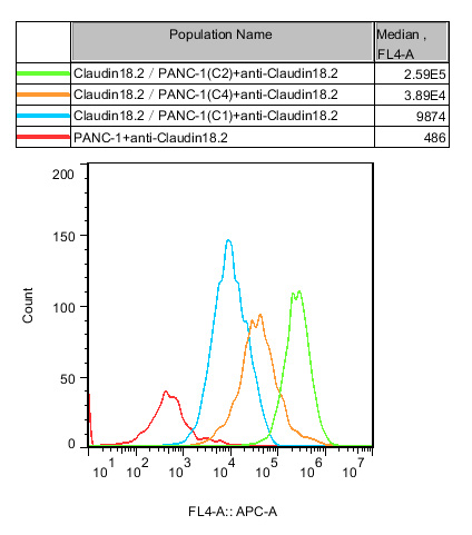 Claudin18是位于細胞膜表面緊密連接的主要成分,它在維持細胞極性和屏障功能以及促進耐酸能力方面起著重要作用。CLDN18的第一個外顯子可以選擇性剪接,形成兩個具有高度同源氨基酸序列的不同剪接突變體(CLDN18.1和CLDN18.2)。跨膜蛋白CLDN18由兩個細胞外環、四個跨膜結構域和一個細胞質結構域組成。 |