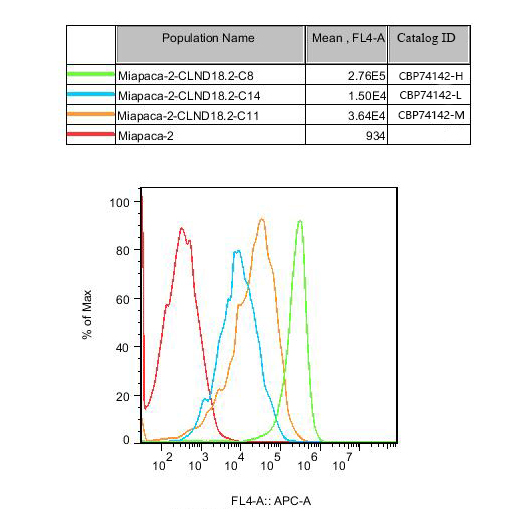 Claudin18是位于細胞膜表面緊密連接的主要成分,它在維持細胞極性和屏障功能以及促進耐酸能力方面起著重要作用。CLDN18的第一個外顯子可以選擇性剪接,形成兩個具有高度同源氨基酸序列的不同剪接突變體(CLDN18.1和CLDN18.2)。跨膜蛋白CLDN18由兩個細胞外環、四個跨膜結構域和一個細胞質結構域組成。 |