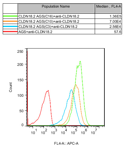 Claudin18是位于細胞膜表面緊密連接的主要成分,它在維持細胞極性和屏障功能以及促進耐酸能力方面起著重要作用。CLDN18的第一個外顯子可以選擇性剪接,形成兩個具有高度同源氨基酸序列的不同剪接突變體(CLDN18.1和CLDN18.2)。跨膜蛋白CLDN18由兩個細胞外環、四個跨膜結構域和一個細胞質結構域組成。 |
