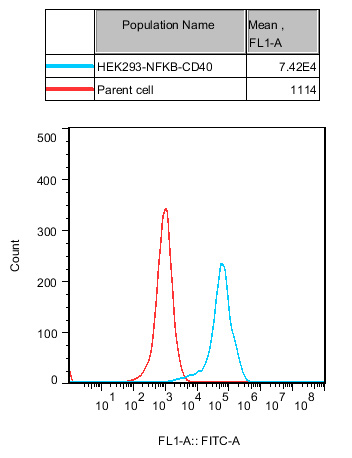 Figure 2. Recombinant HEK293 cell line expressing firefly luciferase gene under the control of NFκB response elements with constitutive expression of CD40. |