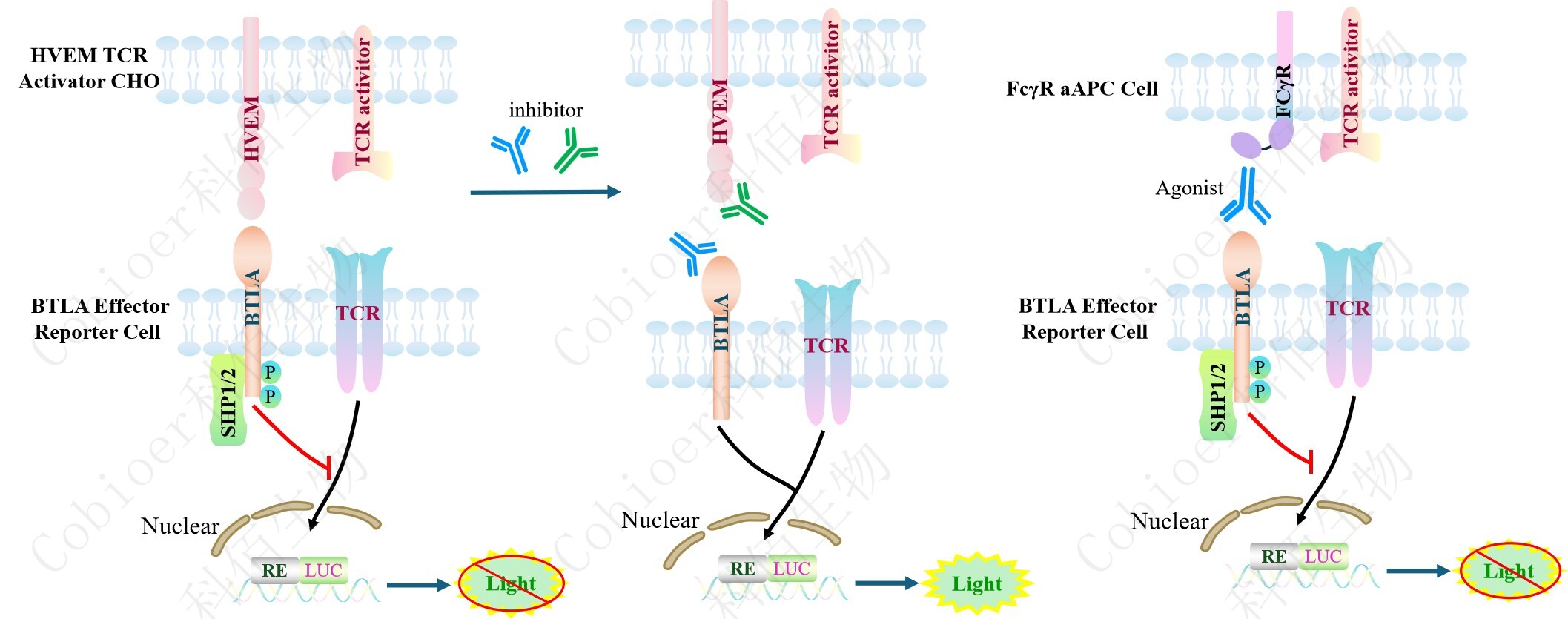 BTLA Effector Reporter Cell 報告基因藥靶模型很好的模擬了體內 BTLA 的信號轉導過 程,原理見下圖所示。![]() Figure 1. BTLA Effector Reporter Cell 模型原理圖 |