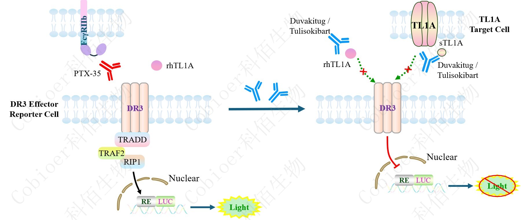 Figure 1. DR3 Effector Reporter Cell 細胞模型原理圖 |