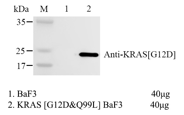 1.WB of KRAS [G12D&Q99L] BaF3 Figure 2. WB of KRAS [G12D&Q99L] BaF3 2.Sanger of KRAS [G12D&Q99L] BaF3 |