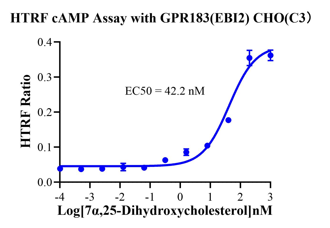 GPR183 也稱為 EBI2,屬于 GPCR Class A 家族,主要在先天性和適應性免疫系統的細 胞上表達。GPR183 主要在病毒感染、免疫細胞和星形膠質細胞的背景下進行研究,它促 進淋巴細胞、樹突狀細胞和巨噬細胞向次級淋巴器官的趨化分布。GPR183 是分枝桿菌感 染期間細胞內細菌生長和 I 型 IFN 產生的關鍵調節因子,GPR183 表達降低與結核病嚴重程 度增加有關。EBI2 表達失調也與人類腫瘤疾病有關,例如急性髓系白血病、慢性淋巴細胞 白血病、彌漫性大 B 細胞淋巴瘤以及濾泡淋巴瘤。 |