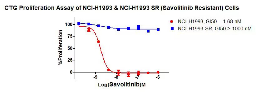 Figure 1. CTG Proliferation Assay of NCI-H1993 & NCI-H1993 SR (Savolitinib Resistant) Cells. |