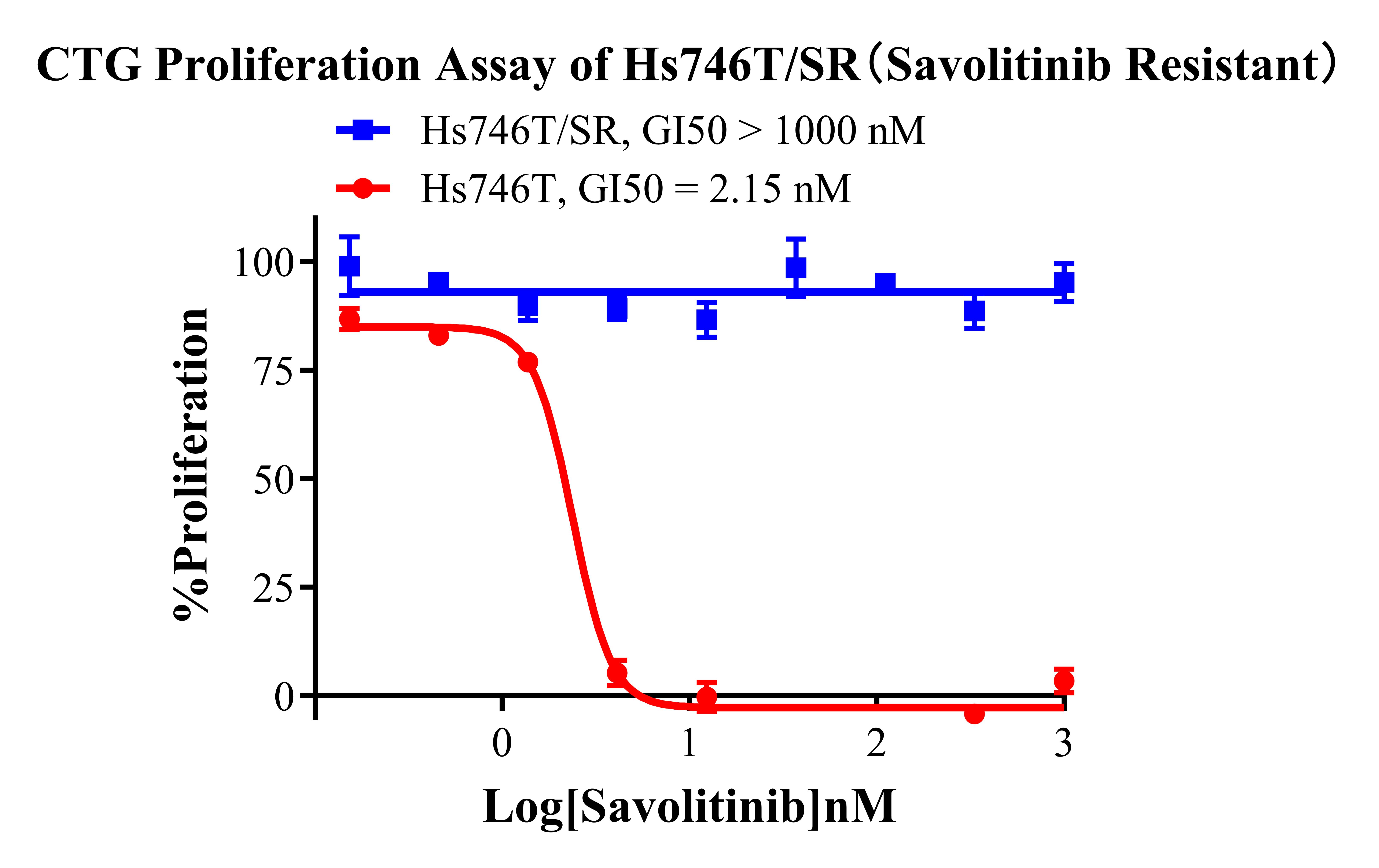 Figure 1. CTG Proliferation Assay of Hs746T/SR (Savolitinib Resistant) . |