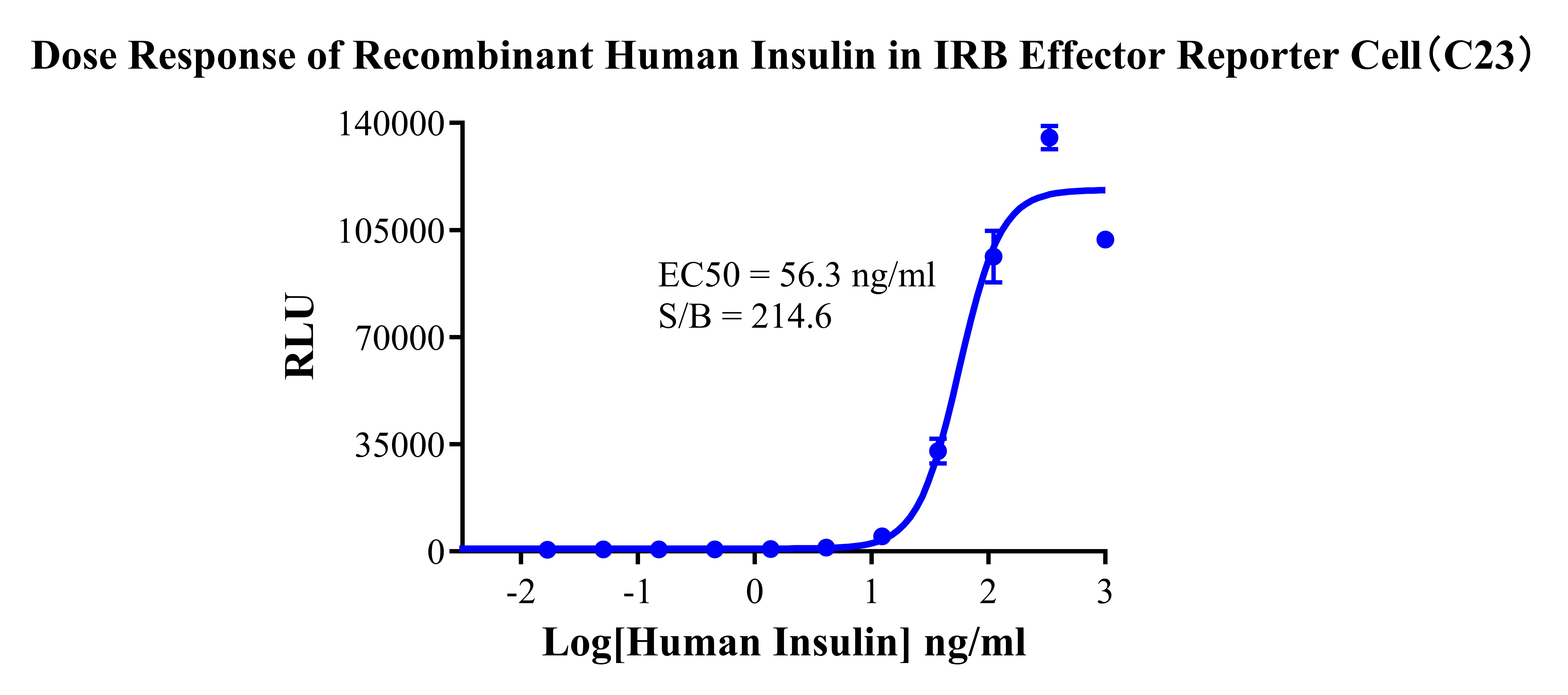 IV. Representative Data![]() Figure 1. Recombinant IRB Effector Reporter Cell stably expressing IRB. ![]() Figure 2. Dose Response of Recombinant Human Insulin in IRB Effector Reporter Cell (C23). |