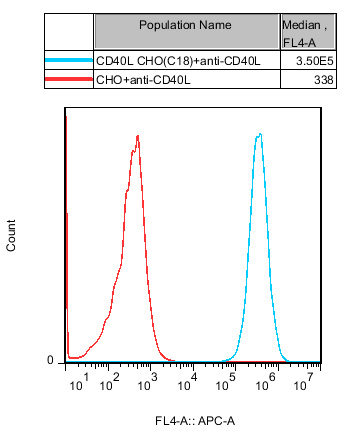 | CD40L CHO 細(xì)胞,在 CHO-K1 細(xì)胞的基礎(chǔ)上,穩(wěn)定表達人 CD40L。 | |