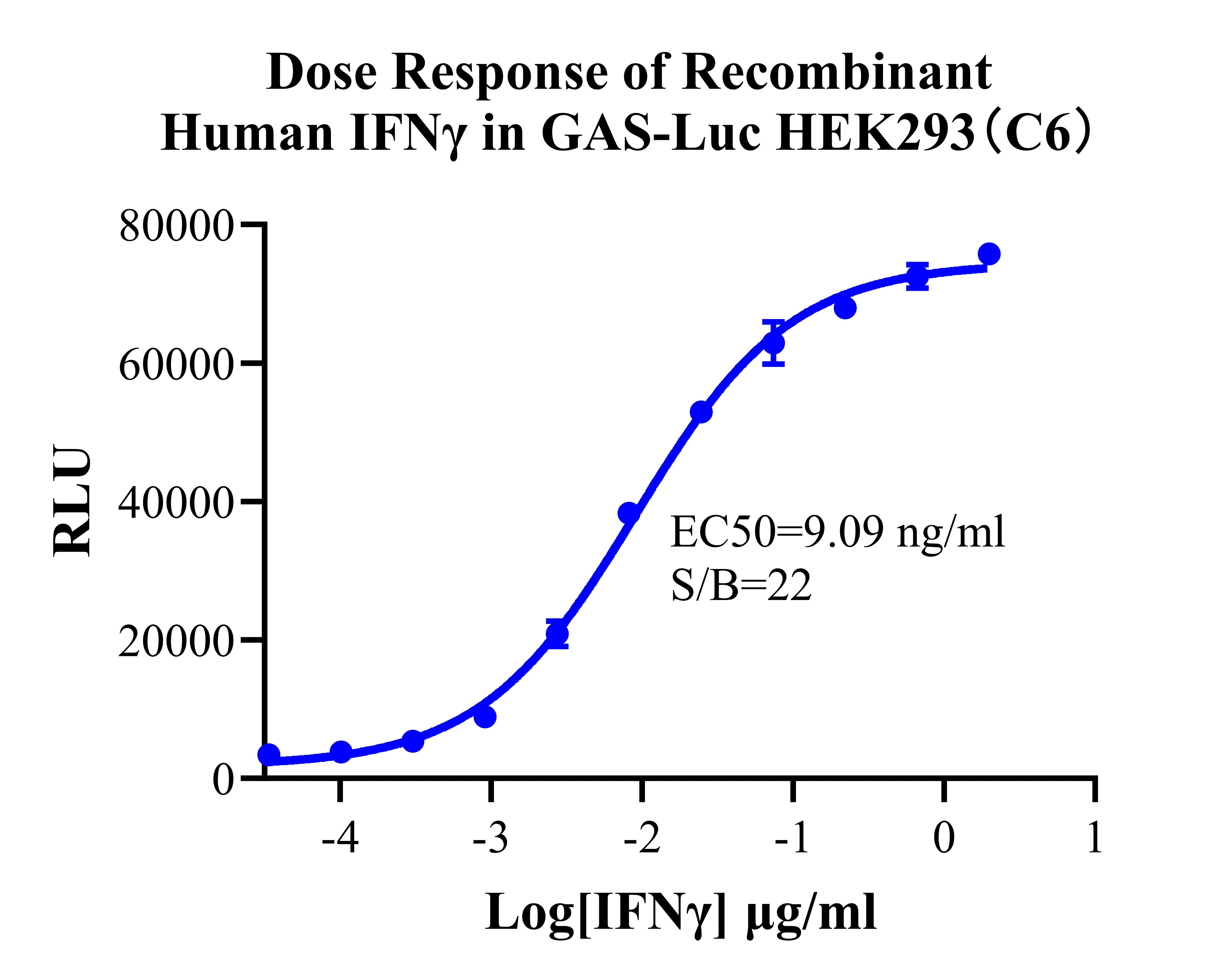 GAS-Luc HEK293 報告基因細胞,是由 GAS 調控并表達 Luc 熒光素酶 報告基因的 HEK293 細胞。IFNγ與受體結合,激活 GAS 的原理見下圖所示。