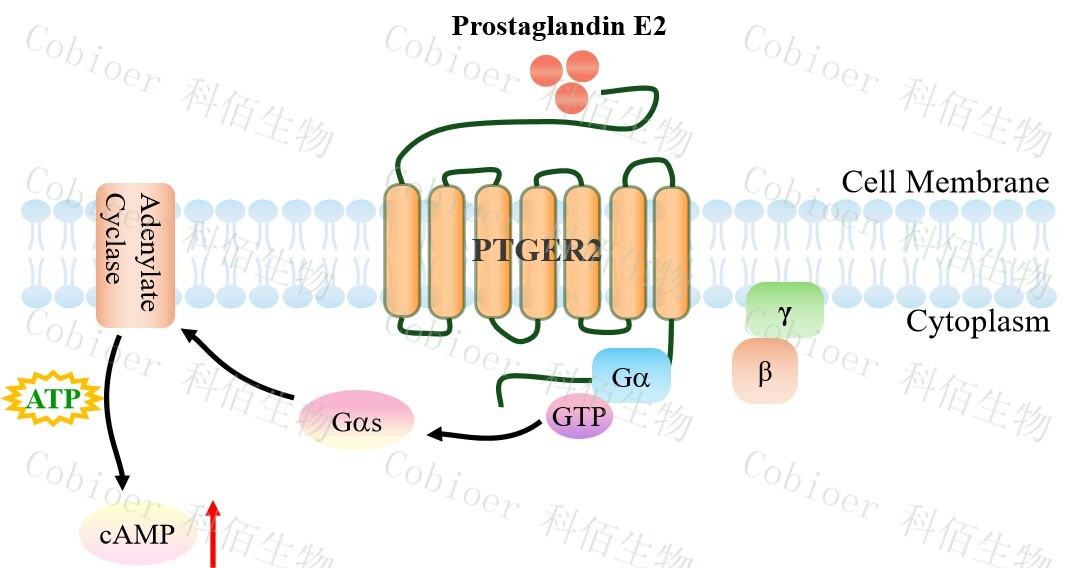 PTGER2(前列腺素 E2 受體 2 型)屬于前列腺素類受體家族,廣泛分布于皮膚黏膜血 管、免疫細胞(如巨噬細胞、T 細胞)、子宮/氣道平滑肌及中樞神經系統,其內源性配體 主要為前列腺素 E2(PGE2);該受體通過偶聯 Gq 蛋白(升高胞內鈣離子誘導平滑肌收縮) 和 Gi 蛋白(抑制 cAMP 并激活 MAPK 通路)介導雙重信號,參與血管擴張、痛覺敏化、 免疫調控及平滑肌收縮等生理過程,其異常激活與銀屑病、哮喘、類風濕關節炎等炎癥性 疾病,以及 腫瘤免疫逃逸(如結直腸癌)和神經炎癥(如阿爾茨海默病) 密切相關,成為 抗炎與腫瘤治療的重要靶點。 |