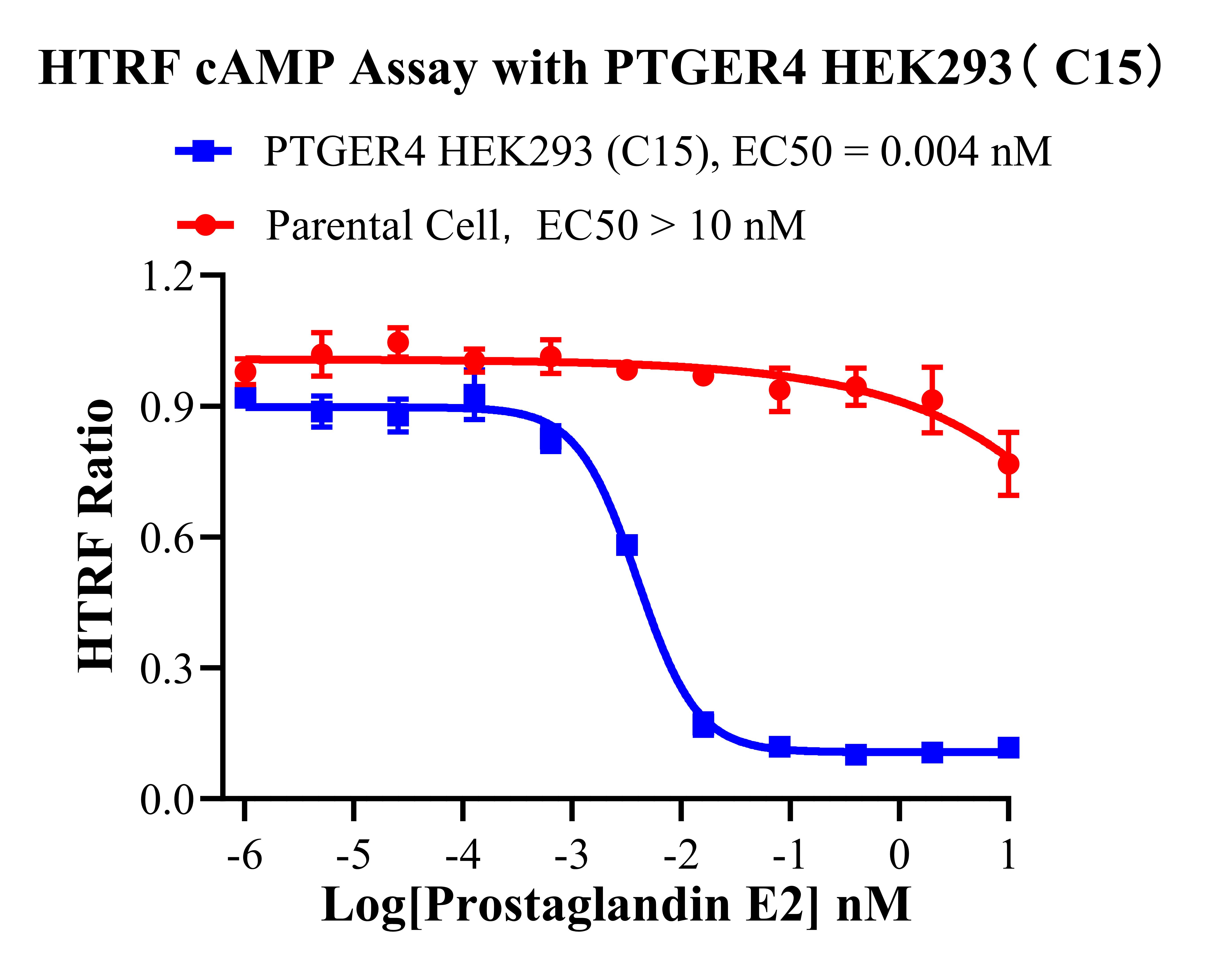 PTGER4 HEK293 細(xì)胞藥靶模型很好的模擬了體內(nèi) PTGER4 的信號(hào)轉(zhuǎn)導(dǎo)過(guò)程,原理見(jiàn)下圖所示。