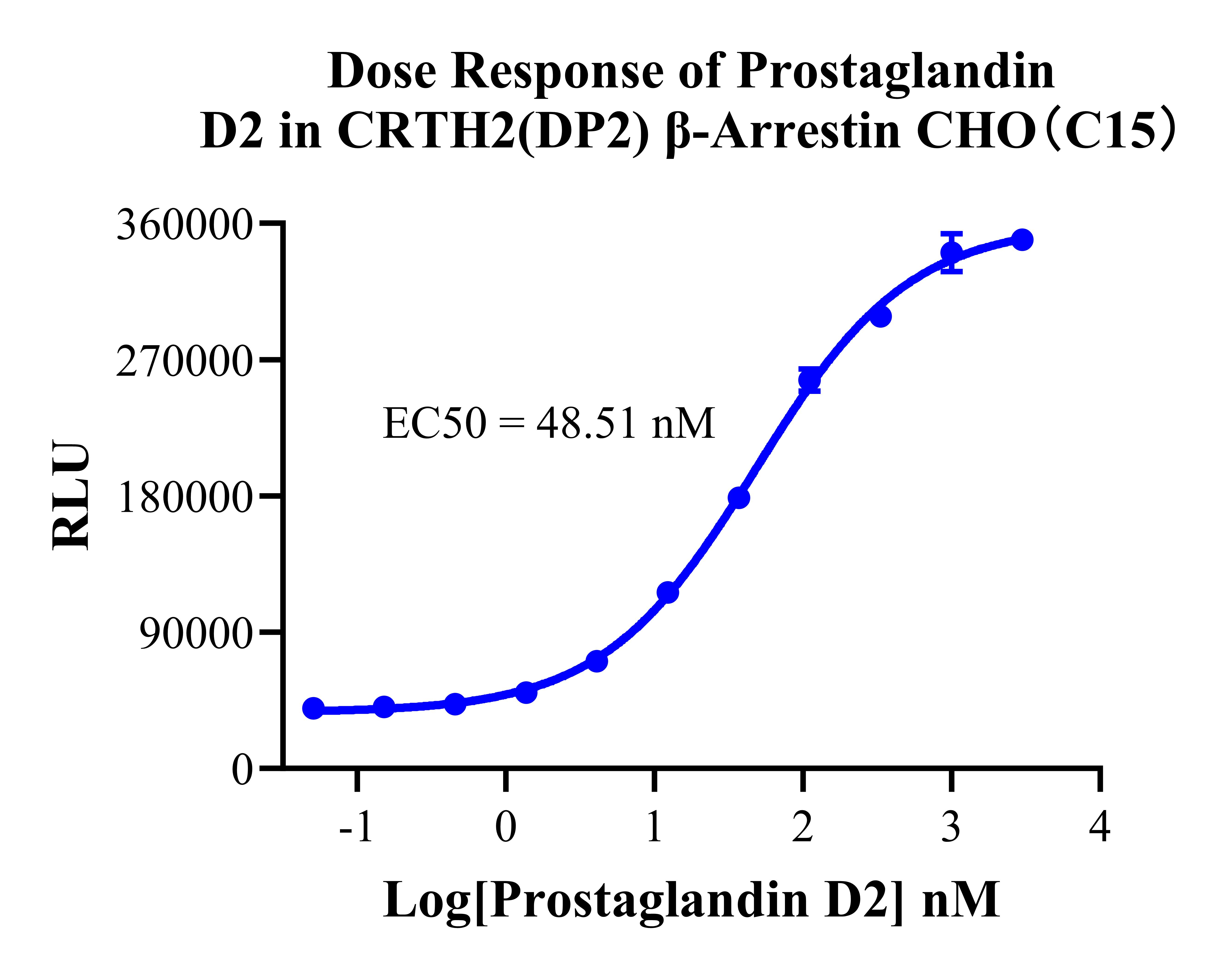 V. Representative Data![]() Figure 2.Recombinant CRTH2(DP2) β-Arrestin CHO stably expressing CRTH2(DP2). ![]() Figure 3. Dose Response of Prostaglandin D2 in CRTH2(DP2) β-Arrestin CHO(C15).. |