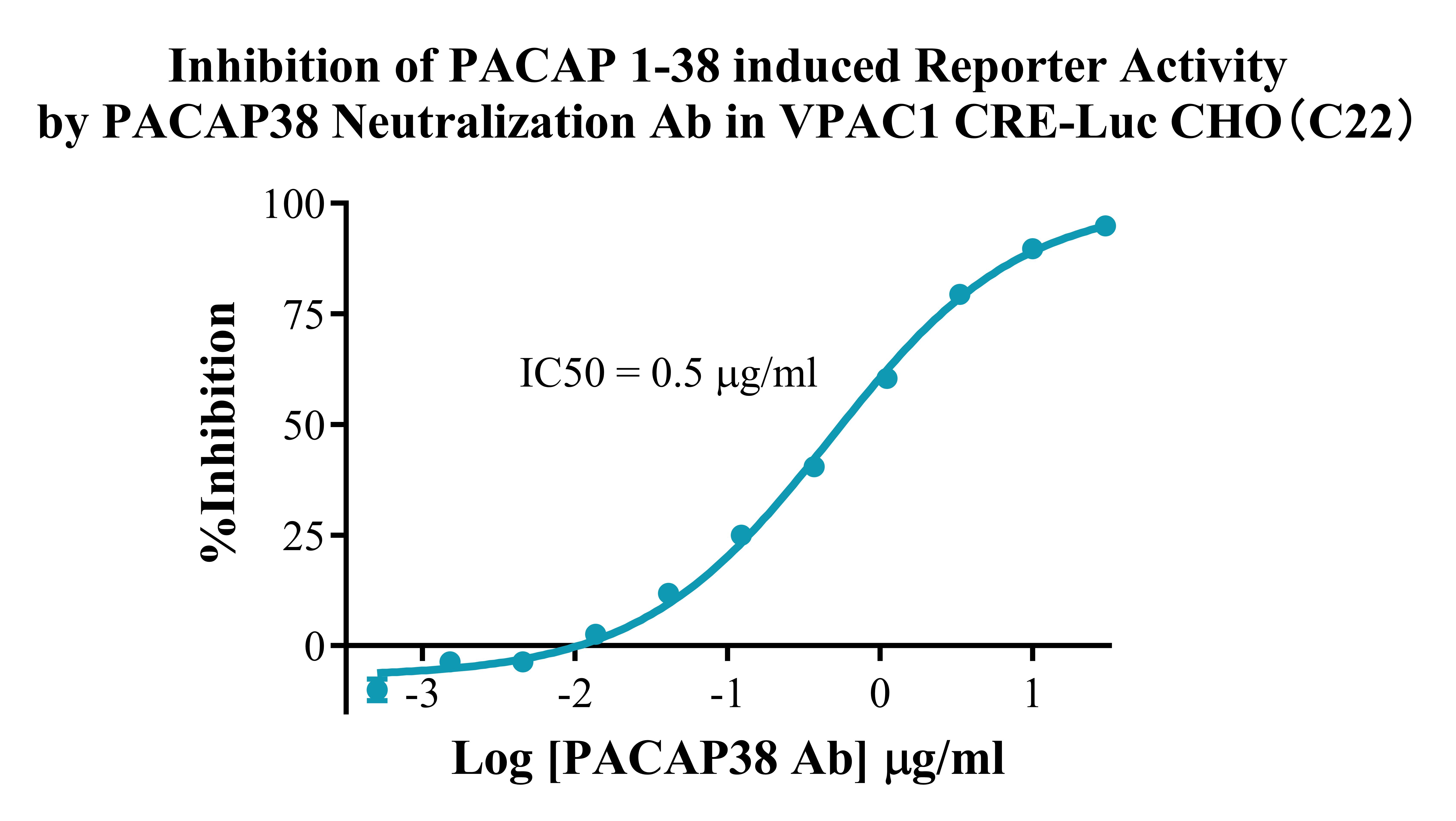 V. Representative Data![]() Figure 2. Recombinant VPAC1 CRE-Luc CHO stably expressing VPAC1. ![]() Figure 3. Dose Response of Agonists in VPAC1 CRE-Luc CHO(C22). ![]() Figure 4.Inhibition of PACAP 1-38 induced Reporter Activity by PACAP38 Neutralization Ab in VPAC1 CRE-Luc CHO(C22). |
