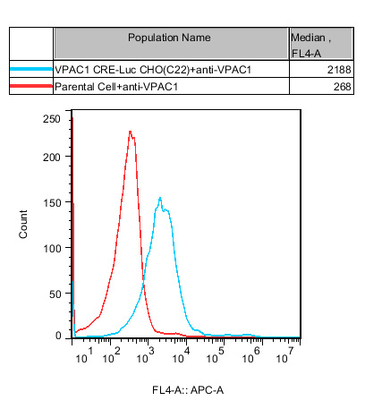 VPAC1 CRE-Luc CHO 報告基因藥靶模型很好的模擬了體內 VPAC1 的信號轉導過程, 原理見下圖所示。![]() Figure 1. VPAC1 CRE-Luc CHO 細胞模型原理圖 |