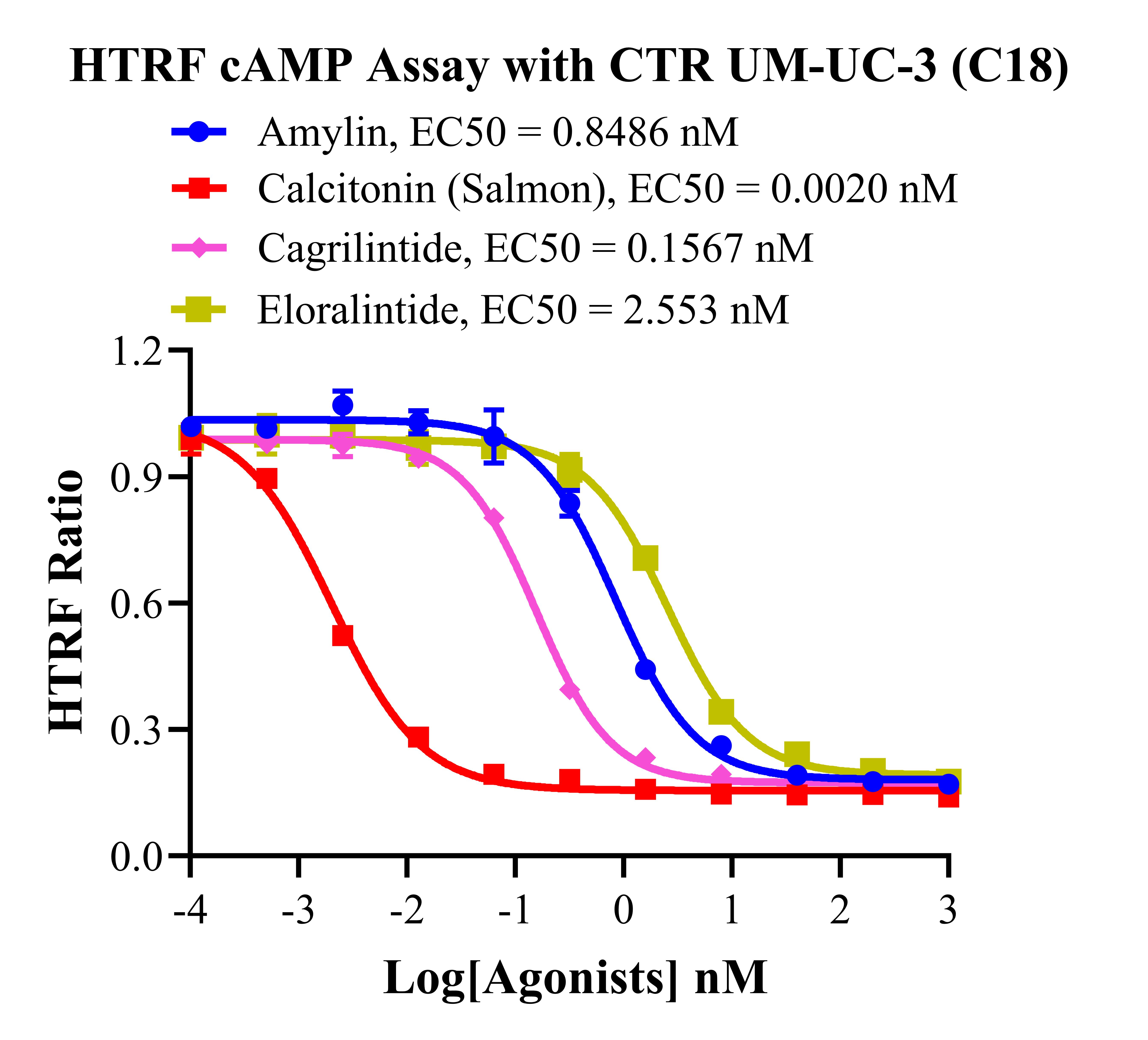 CTR UM-UC-3 細胞藥靶模型很好的模擬了體內 CTR 的信號轉導過程,原理見下圖所示。![]() Figure 1. CTR UM-UC-3 細胞模型原理圖 |