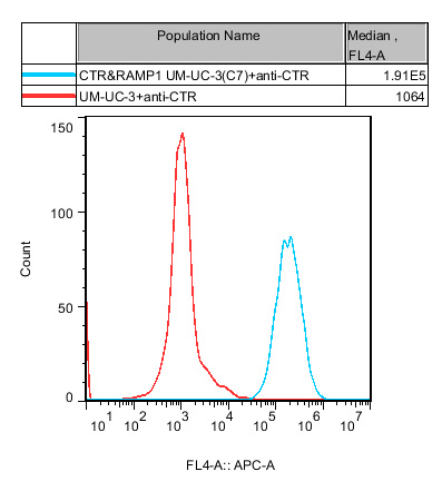 CTR&RAMP1 UM-UC-3 細胞藥靶模型很好的模擬了體內(nèi) CTR&RAMP1 的信號轉(zhuǎn)導(dǎo)過程,原理見下圖所示。![]() Figure 1. CTR&RAMP1 UM-UC-3 細胞模型原理圖 |