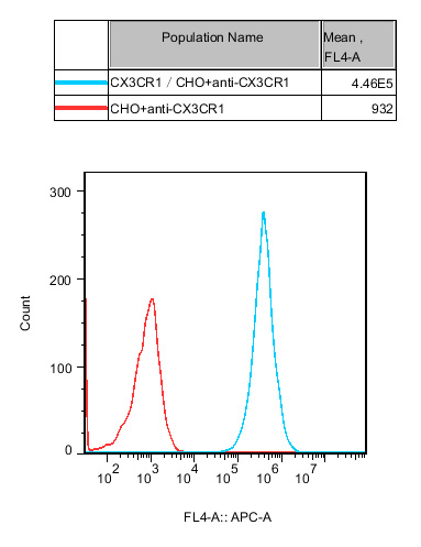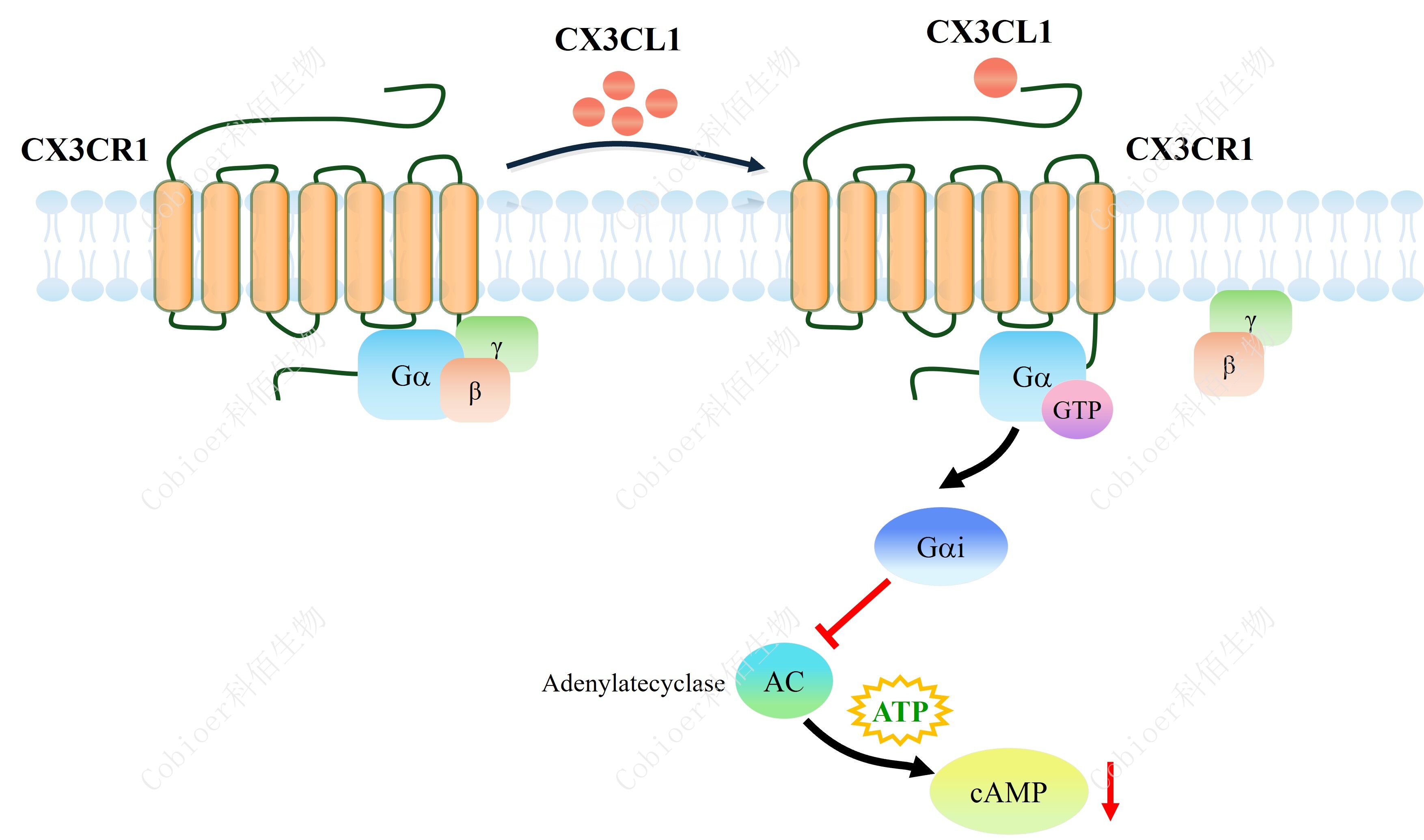 | CX3C 基序趨化因子受體 1 (CX3CR1),也稱為分形因子受體或 G 蛋白偶聯受體 13 (GPR13),是 G 蛋白偶聯受體 1 (GPCR1) 家族的跨膜蛋白,也是 CX3C 趨化因子受體亞 家族中唯一已知的成員。它是一種高度選擇性的表面受體,通常在單核細胞、CD4 T 細胞、 CD8 T 細胞、NK 細胞和 γδ 細胞上表達。CX3CL1 是一種獨特的趨化因子,可與其唯一受體 CX3CR1結合。 CX3CR1-CX3CL1細胞內信號級聯負責調節細胞活性,使其達到更高的活性狀態,如存活、遷移和增殖等。 |