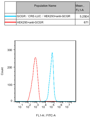 V. Representative Data![]() Figure 2. Recombinant GCGR/CRE-Luc/HEK293 stably expressing GCGR. ![]() |