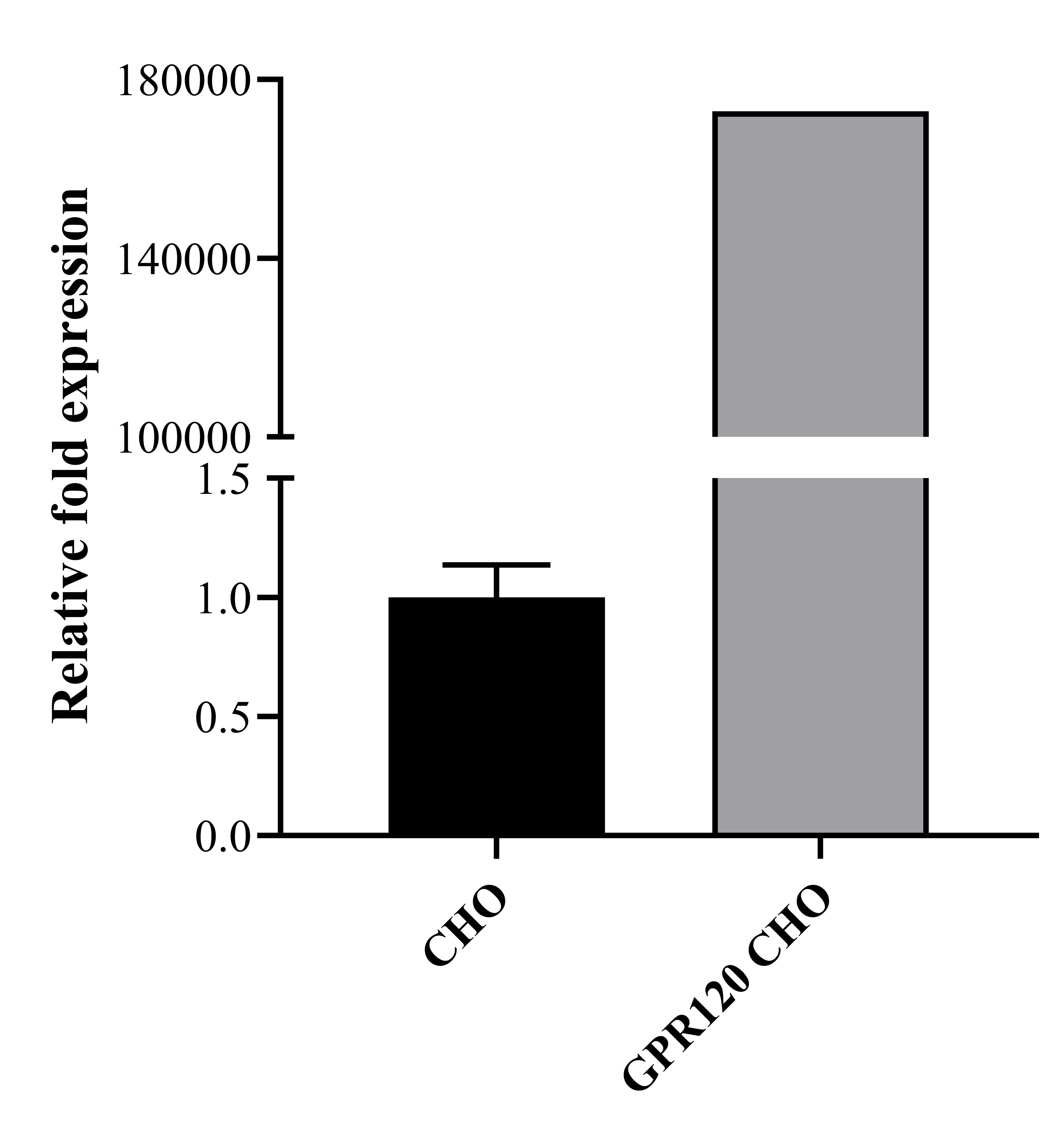 GPR120 與配體結(jié)合,導(dǎo)致 Gαq 亞基的激活,觸發(fā) PLC-γ,從而產(chǎn)生兩個(gè)第二信使: IP3 和 DAG,它們參與細(xì)胞內(nèi)鈣動(dòng)員。GPR120 CHO 細(xì)胞藥靶模型很好的模擬了體內(nèi) GPR120 的信號(hào)轉(zhuǎn)導(dǎo)過程,原理見下圖所示。![]() Figure 1. GPR120 CHO 細(xì)胞模型原理圖 |