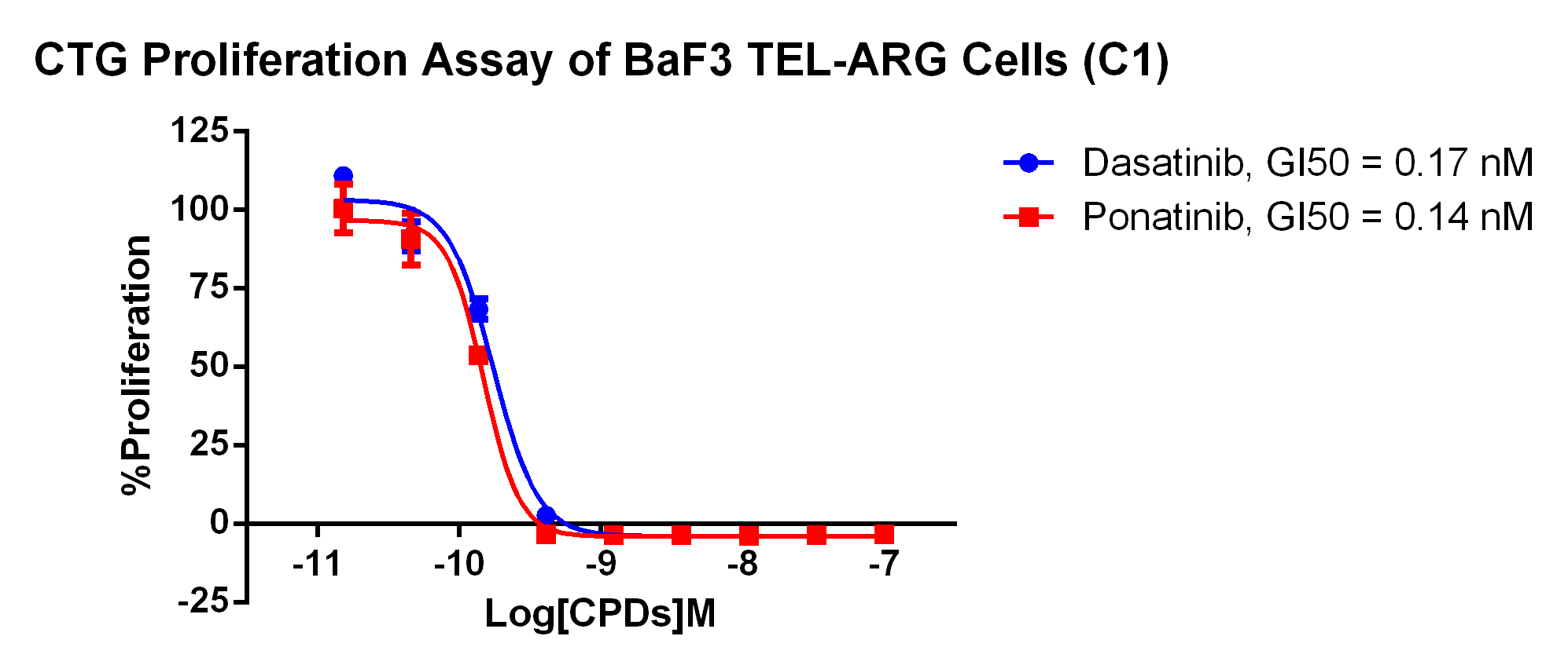 Figure 1. CTG Proliferation Assay of BaF3 TEL-ARG Cells (C1). |
