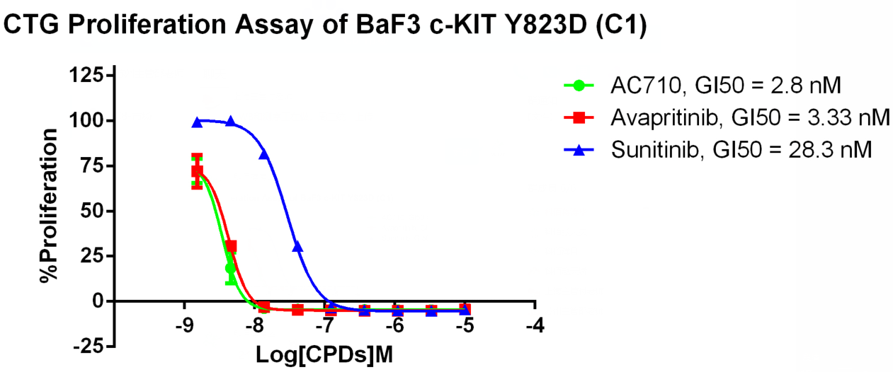 Figure 3. CTG Proliferation Assay of BaF3 c-KIT Y823D (C1). |