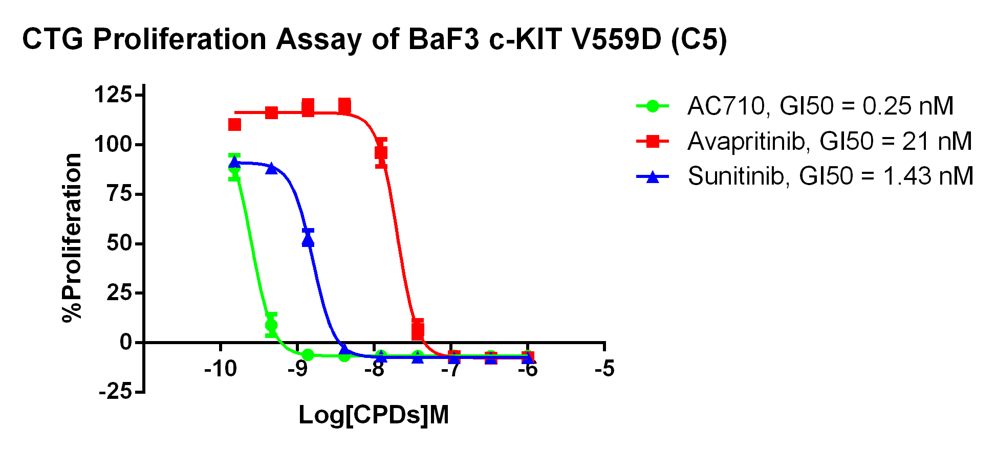 Figure 2. CTG Proliferation Assay of BaF3 c-KIT V559D (C5). |