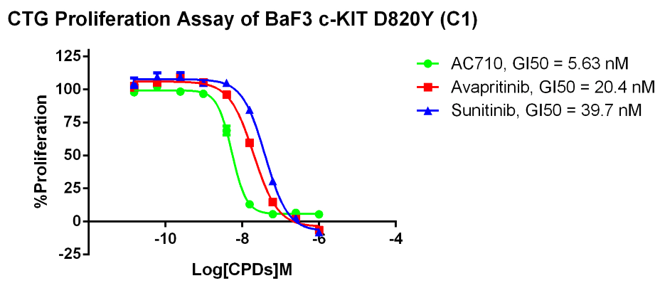 Figure 3. CTG Proliferation Assay of BaF3 c-KIT D820Y (C1). |