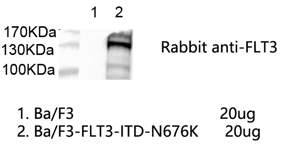 FLT3, receptor-type tyrosine-protein kinase FLT3, activates Akt, Ras, and Erk pathways to regulate differentiation, proliferation, and survival of hematopoietic progenitor cells (PMID: 29316714, PMID: 28538663). Activating mutations of FLT3 are common in hematologic tumors (PMID: 19467916) and the internal tandem duplication (ITD) mutation is commonly observed in acute myeloid leukemia (PMID: 30181385). |