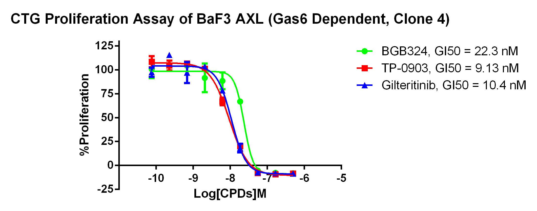Figure . Anti-proliferation assay of three reference compounds on the AXL (Gas6 Dependent)/BaF3 Stable Cell Line. |