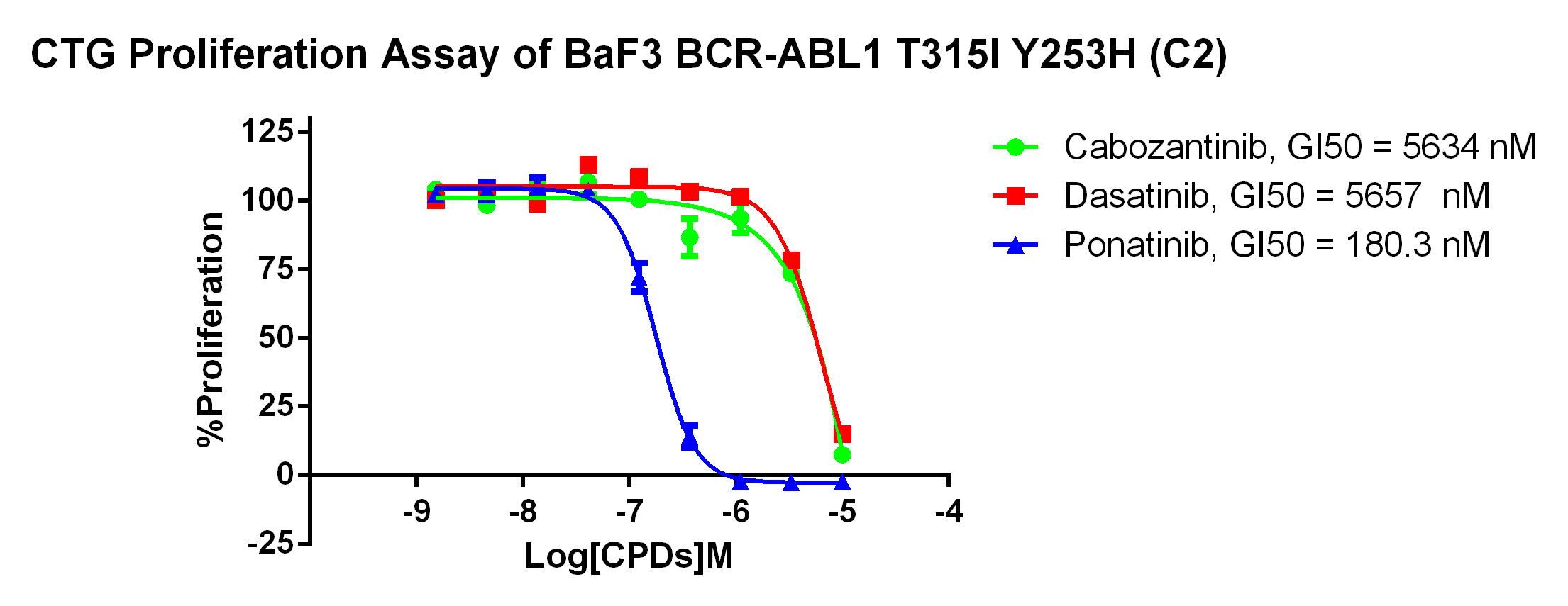 Figure 5. CTG Proliferation Assay of BaF3 BCR-ABL1 T315I Y253H (C2). |