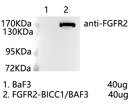 FGFR2-BICC1 results from the fusion of FGFR2 and BICC1, resulting in the ability to induce oligomerization, Fgfr kinase activity, Mapk signaling and transformation of cells in culture and in animal models (PMID: 23558953, PMID: 24122810, PMID: 28416604). FGFR2-BICC1 has been identified in intrahepatic cholangiocarcinoma (PMID: 25608663, PMID: 31899106). |