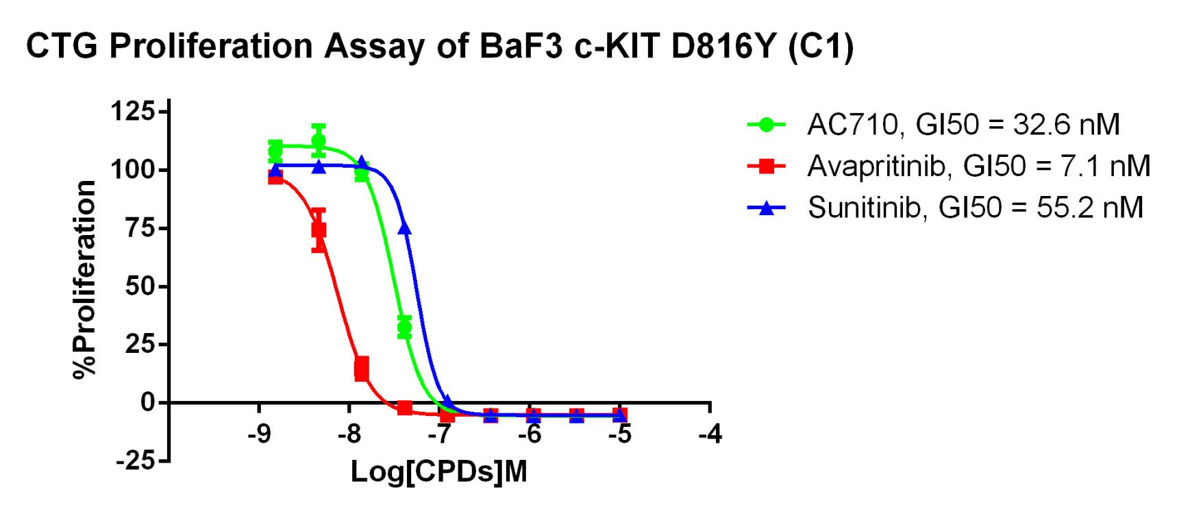 Figure 3. CTG Proliferation Assay of BaF3 c-KIT D816Y (C1). |