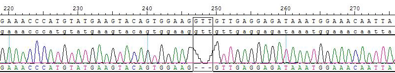 | KIT V560del (also reported as V559del) results in the deletion of an amino acid in the juxtamembrane domain (exon 11) of the Kit protein at amino acid 560 (PMID: 12879016). V560del confers a gain of function to Kit, resulting in constitutive, ligand independent phosphorylation of Kit and activation of Akt in cell culture (PMID: 15236194, PMID: 22282465), and transformation of cultured cells (PMID: 19861435). | |