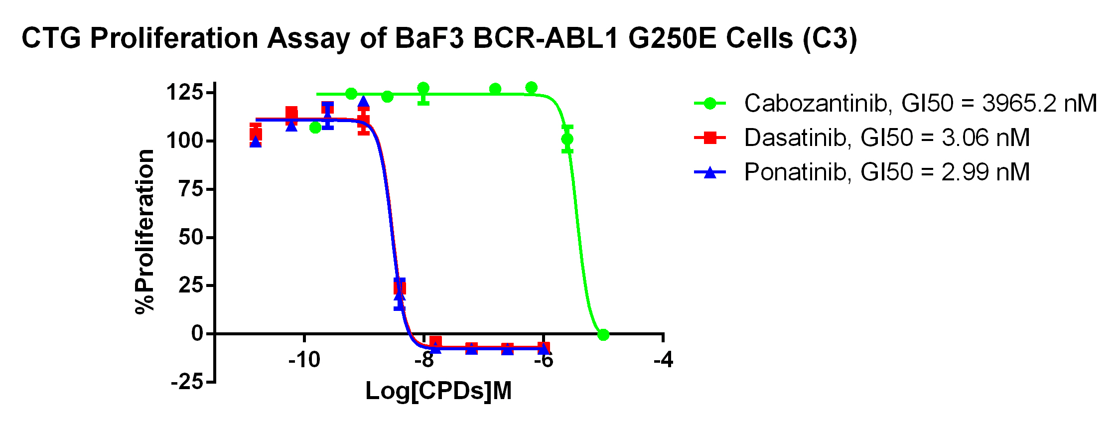 Figure 4. CTG Proliferation Assay of BaF3 BCR-ABL1 G250E Cells (C3). |