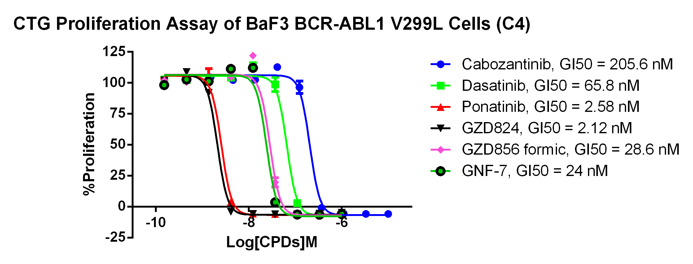 Figure 4. CTG Proliferation Assay of BaF3 BCR-ABL1 V299L Cells (C4). |