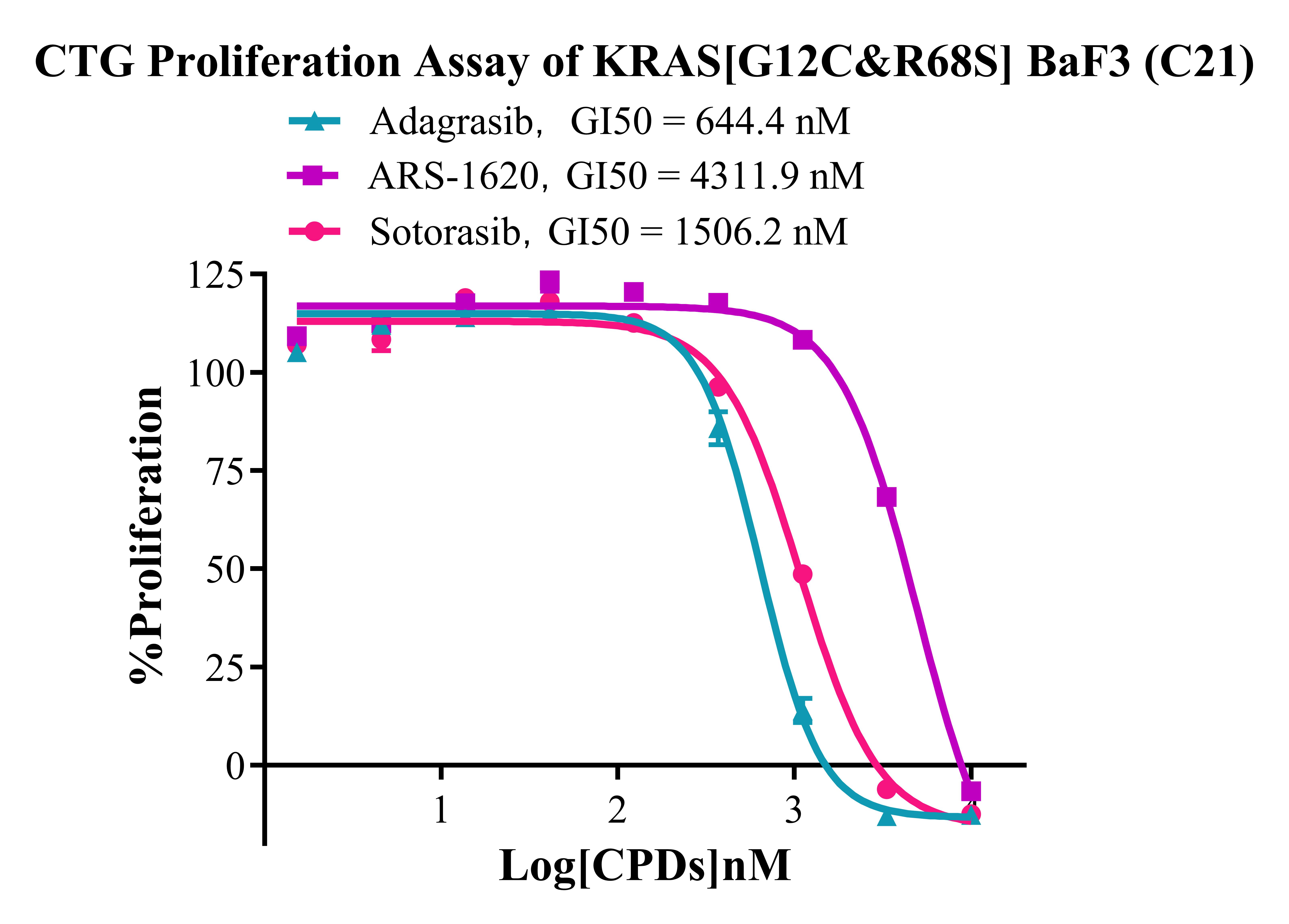 Figure 3. CTG Proliferation Assay of KRAS[G12C&R68S] BaF3 (C21). |