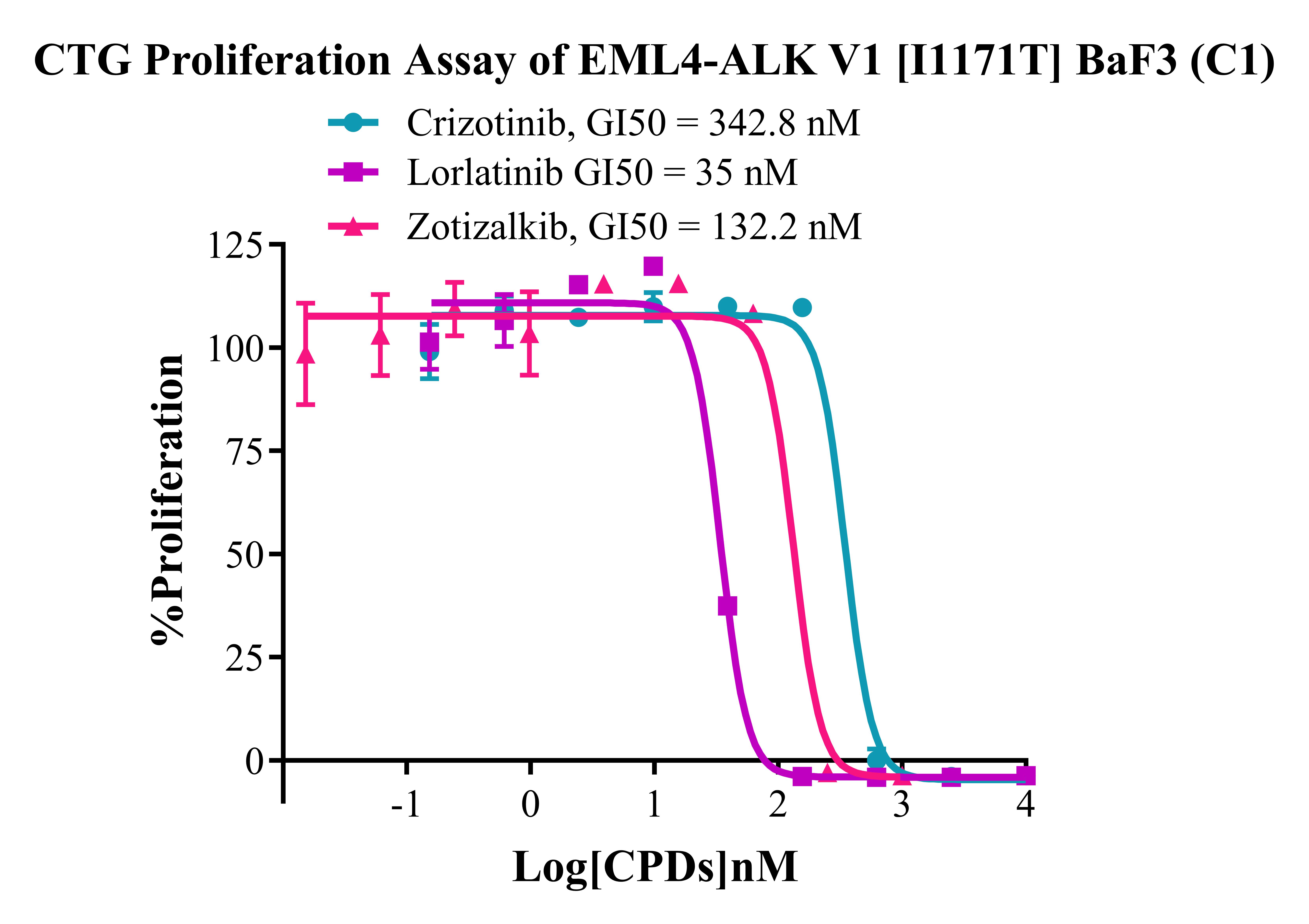 Figure 4. CTG Proliferation Assay of EML4-ALK V1 [l1171T] BaF3(C1). |