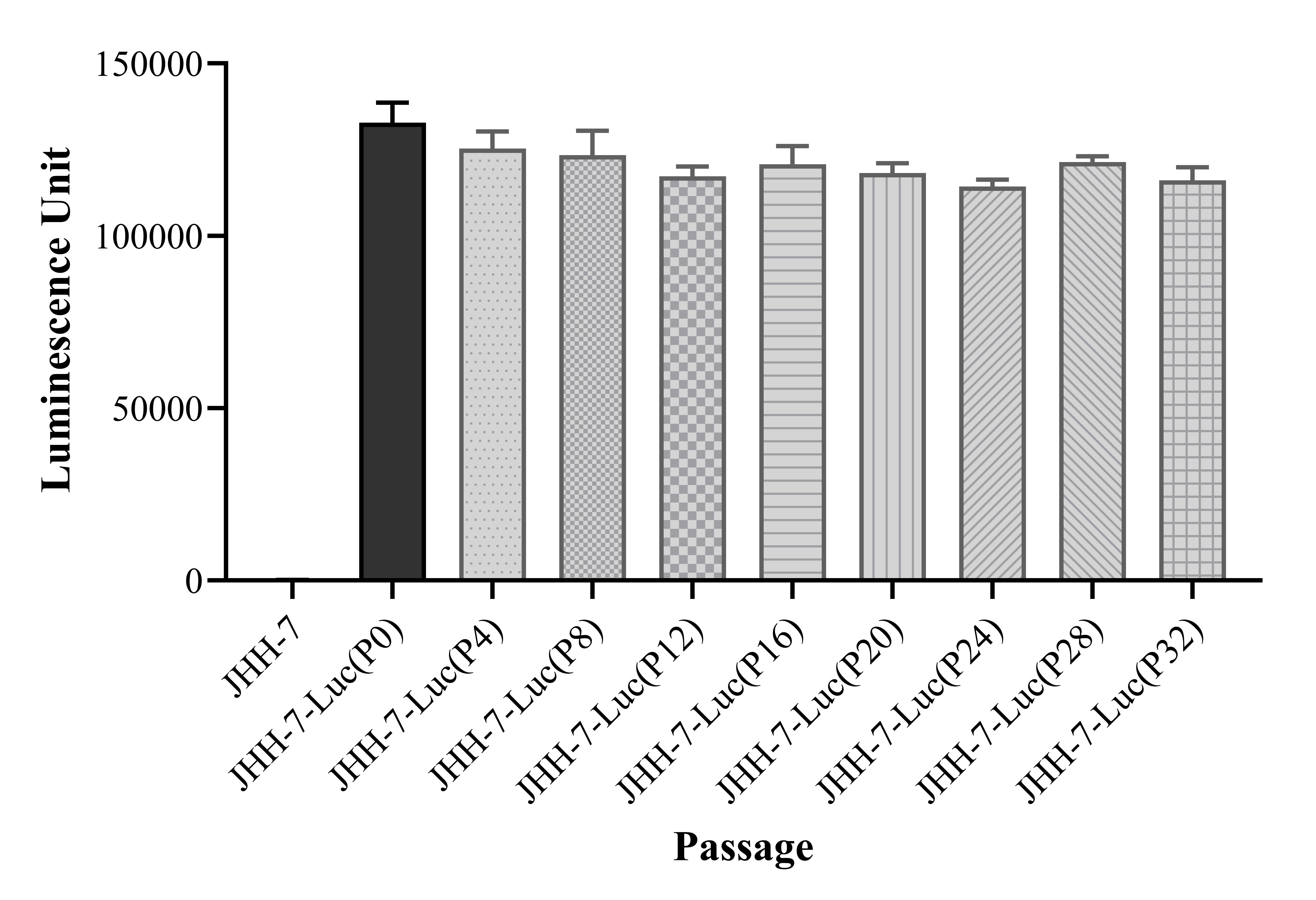 Figure 1. Stablity test results. JHH-7-Luc showed at least 32 passage stability with similar luminescence unit. |