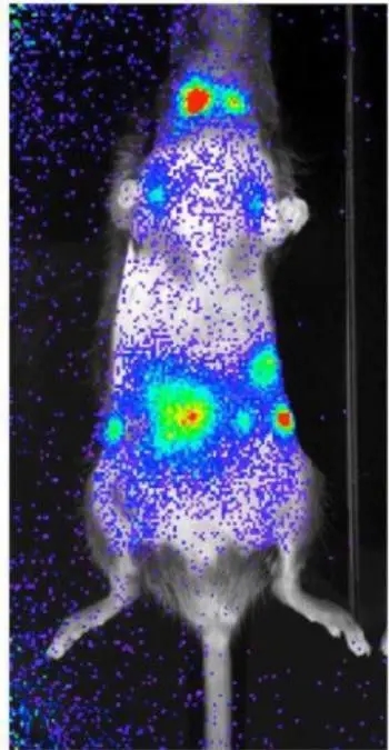 2.腫瘤轉移:由于活體成像技術直觀、靈敏度高的特點,成為研究腫瘤轉移的重要手段。動物體內腫瘤轉移示例: