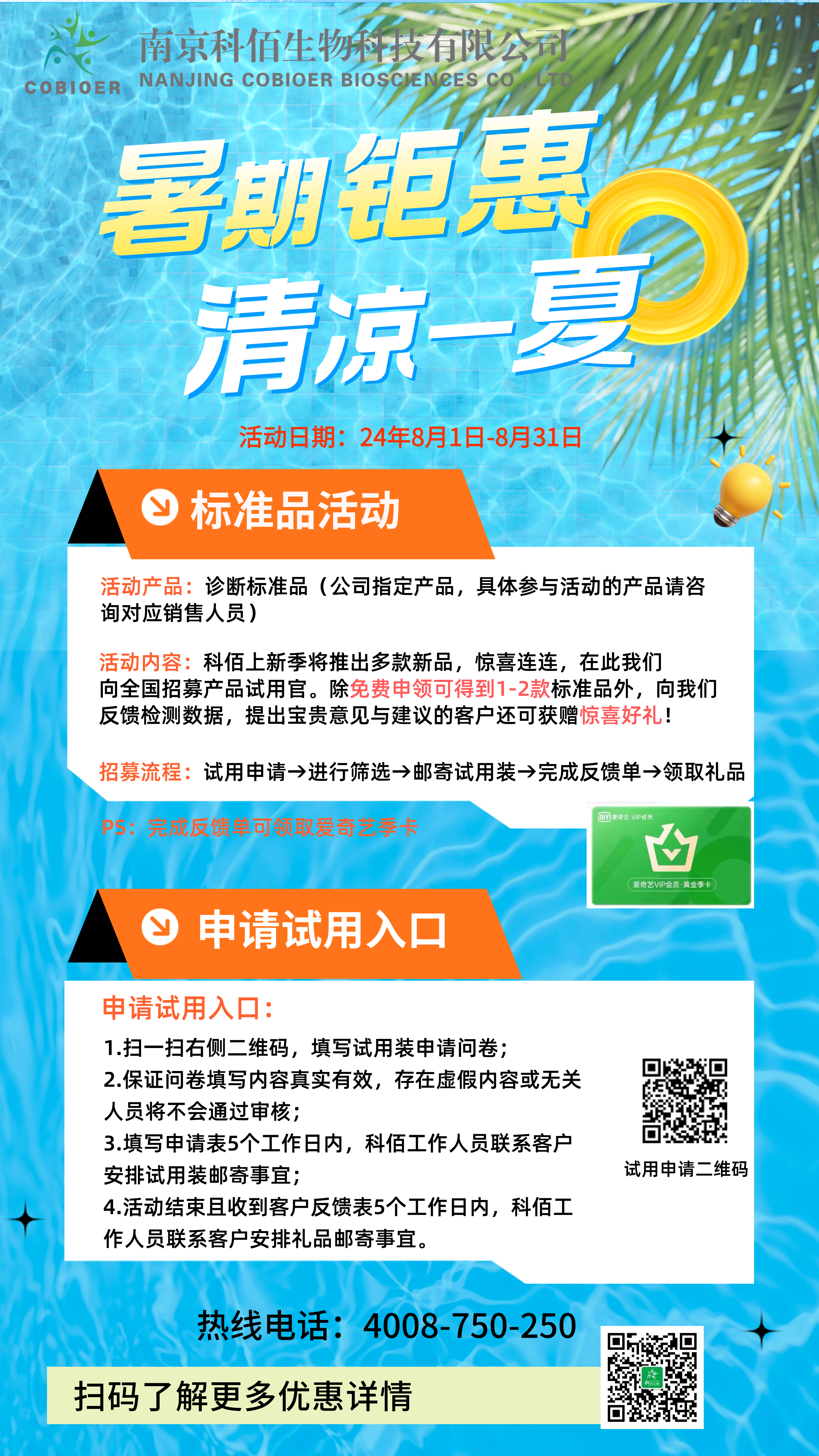 科佰8月上新季將推出多款新品,驚喜連連,在此我們向全國招募產(chǎn)品試用官。除免費申領(lǐng)可得到1-2款標(biāo)準(zhǔn)品外,向我們反饋檢測數(shù)據(jù),提出寶貴意見與建議的客戶還可獲贈驚喜好禮!