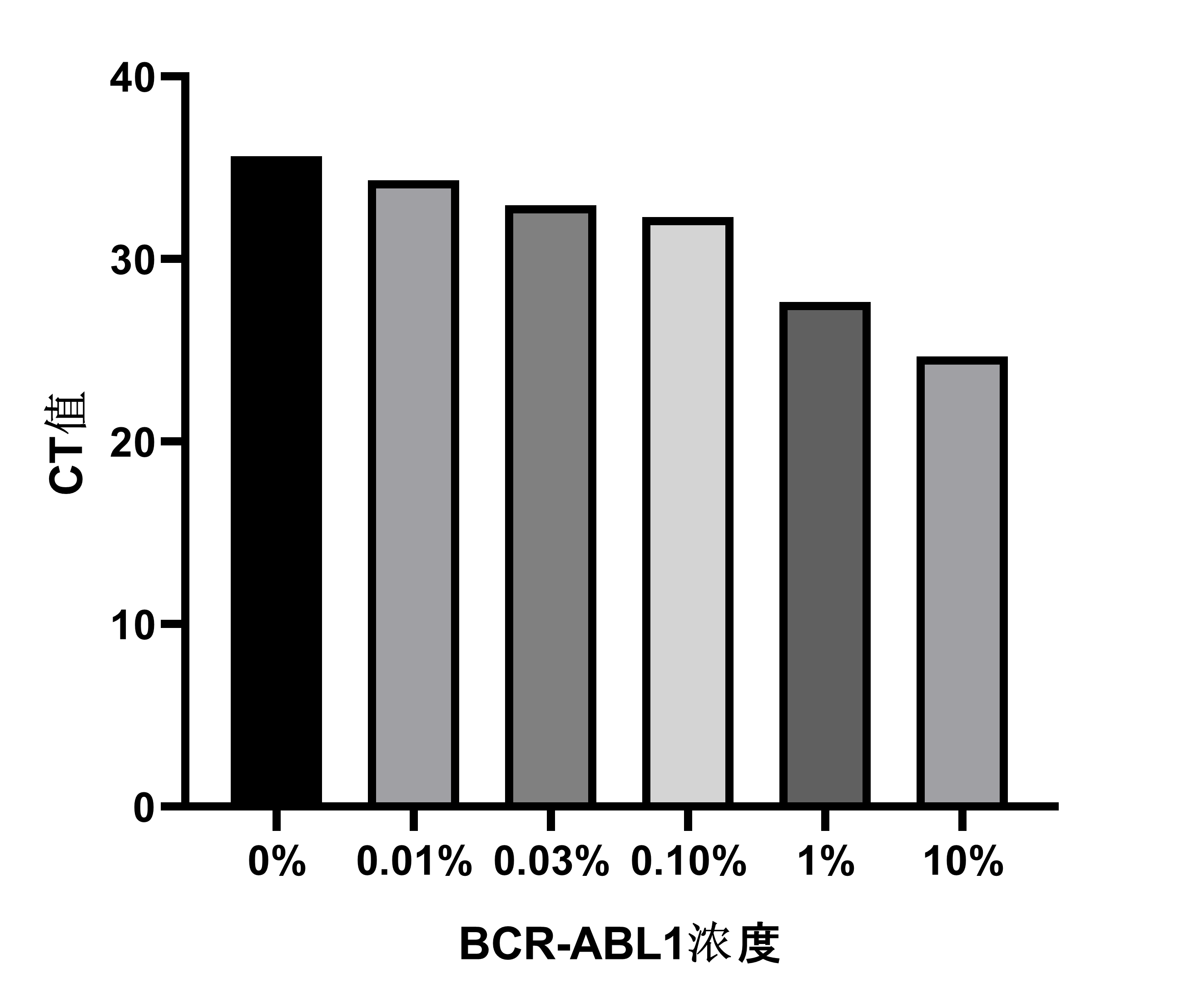 應用描述:qPCR用于定量分析比較不同占比的BCR-ABL1標準品
