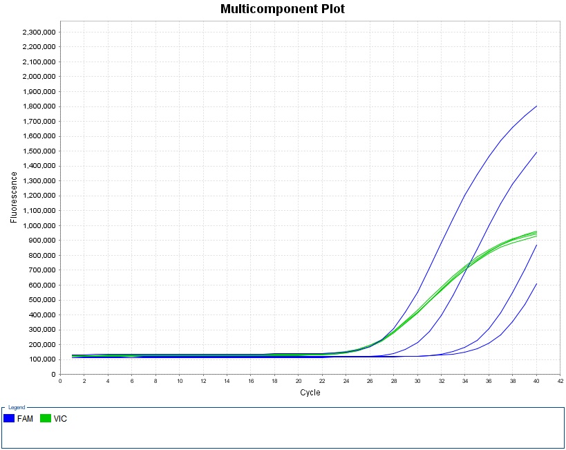實時熒光定量PCR在檢測體系中加入熒光基團,通過PCR 擴增反應中每一個循環產物熒光信號的實時檢測,從而實現對起始模板的定量及定性分析。隨著PCR反應的不斷進行,帶熒光的PCR產物逐步累積,信號強度等比例增強。這樣,我們可以通過熒光信號的變化來實時監控PCR產物量的變化,得到一條擴增曲線。
